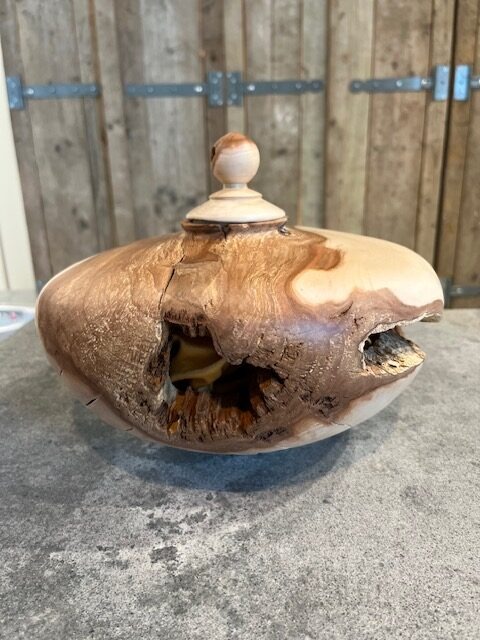 Michel Ruigrok is altijd op zoek naar ander hout om mooie persoonlijke urnen van te maken. Deze urn is gemaakt van de stam van een perenboom.